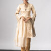 Design description: Kurti collar v henley neckline with floral hand embroidery, organza dupatta